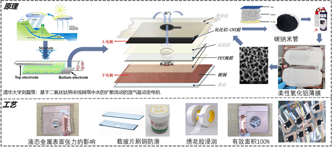 目前已经探索了柔性自供电湿度传感器的原理,材料及工艺,解决了液态金属表面张力等问题。