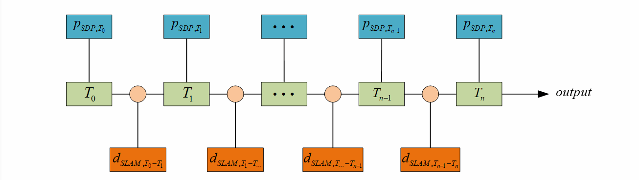 图优化的思路为结合往期定位信息以及当前定位信息对结果进行进一步的优化,得到最终的位置估计,其具体思路如下图所示: