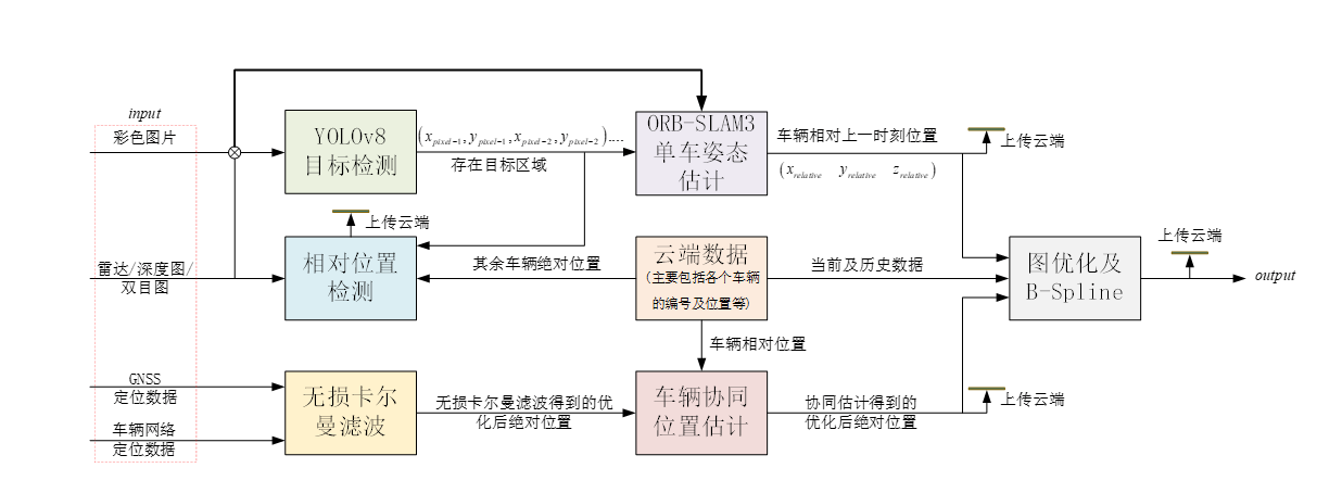 (5)位姿估计数据结合车辆自组织网络数据等进行车辆位置联合估计。