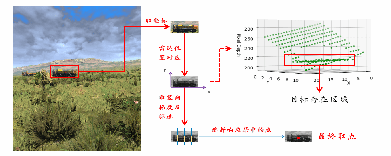 (2)根据图像检测结果结合雷达信号进行测距。