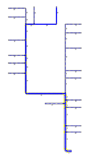 ⑤设计空调水系统:包括冷冻水系统设计、冷凝水系统设计及其他设备选型。首先进行水系统分区,确定水系统的形式,选取管路的管制与程式,进行水管水力计算。