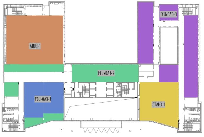 图2 四层空调系统分区图