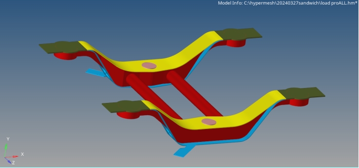 2.学习hypermesh软件,掌握复合材料从铺层到层合板的建模过程,包括设置铺层厚度铺层角度和更改材料方向等。掌握复合材料铺层优化的方法,包括复合材料铺层块、铺层数和铺层顺序,并以建立的初始模型进行分析,初步结果为优化部分减重30%以上。