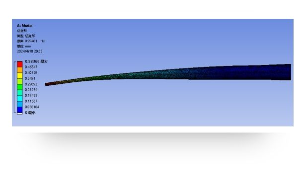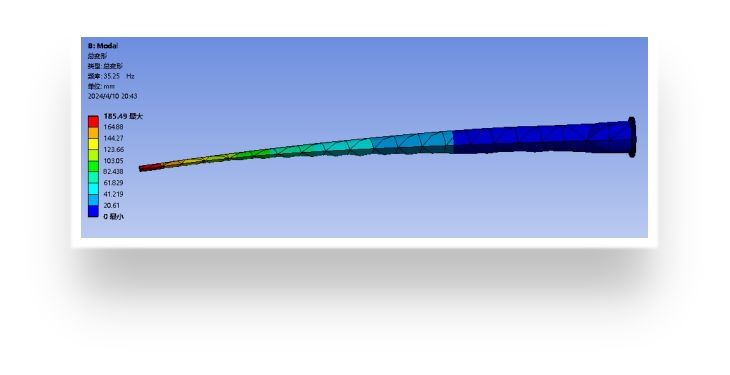 2.运用ANSYS仿真分析真实风机叶片的一阶固有频率大小,结合实验条件设计出实验所需的叶片模型;
