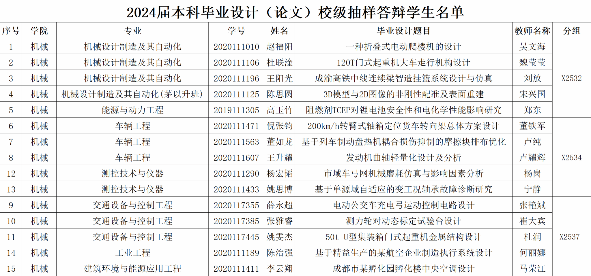 - 附件【附件2:2024届本科生毕业设计(论文)面上答辩安排.xlsx】