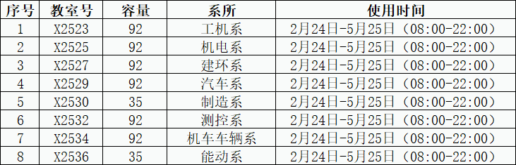 2.所有专用教室将从2月24日全面开放,若使用中有问题,请与二号教学楼物管X2219(电话:66367711)或教务处实践科(电话:66366254)联系。