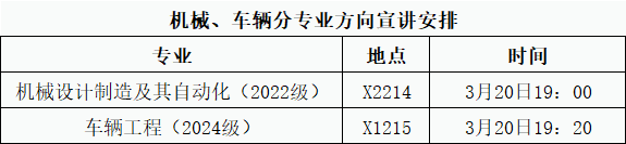 专业介绍会后,按班级填写《三亿分专业方向选择志愿表》,并于3月27日上午10点之前将纸质版交至辅导员办公室(2022级交X2202、2024级交X2203),电子版2022级发送至swjtu_jx2202@163.com,2024级发送至swjtujixie2024@163.com,邮件标题为机械/车辆/2022、2024-0*班分专业方向志愿表。