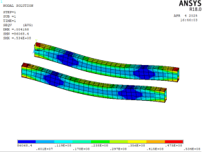 静刚度校核:最大挠度为0.000216m,许用最大挠度为0.02m;