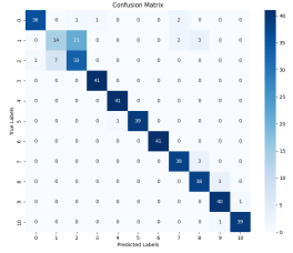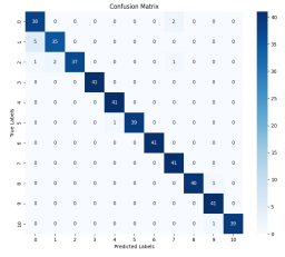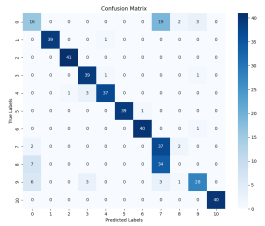 下图为基于LSTM的故障诊断方法与基于LSTM-AM的故障诊断方法全拆故障试验的混淆矩阵图。该图中横轴代表诊断的样本标签,纵轴代表样本的真实标签,可知在对角线上的元素代表了准确预测的样本。从图中可以看出总共447个测试样本中,LSTM方法正确诊断了356个,诊断准确率为79.64%,LSTM-AM方法正确诊断了413个,准确率为92.39%。由此可以看出,在理想工况时,引入自注意力机制的LSTM-AM网络提取时序信号特征能力更强,诊断准确率更高,收敛速度更快。实际故障试验诊断结果对比的结果如下,从两种方法的混淆矩阵中可以看出,LSTM方法诊断准确率达到了89.52%,LSTM-AM方法诊断准确率达到了96.87%。说明两种方法均能实现对转向架悬挂部件实际失效形式的故障诊断,并且可以看到LSTM-AM网络性能优于LSTM网络。