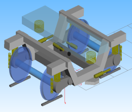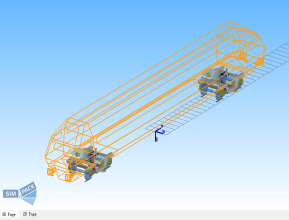 基于SIMPACK平台,建立了CRH380A动车组的动力学模型如下图所示。左图为转向架动力学模型,右图为整车转向架动力学模型。