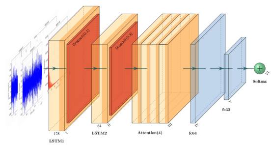图2-7 基于LSTM-AM转向架故障诊断方法结构图
