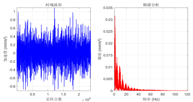 由于功率谱密度反演过程中,存在符合均匀分布的独立相位序列,故每次根据《我国高速铁路无砟轨道不平顺谱》反演得到的时序序列存在随机差异。将随机轨道谱数据粘贴到.tre文件下代入到SIMPACK平台进行仿真计算。选取3条线路的动力学信号如图所示,该信号为列车正常运行时车辆中部横向加速度信号,左侧为该信号的时域波形,右侧为该信号的频域波形。通过下图可以看出,仿真得到的列车振动信号存在差异,轨道随机不平顺对列车动力学信号的幅值和频率分布均有影响。
