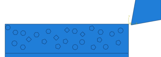 回答:是自己建立的,其中python是通过deepseek生成案例 模板,自己再根据实际情况修改其中Si颗粒的占比、大小、形状等模型参数。后期将对代码检验Si颗粒是否重叠以及生成思路进行优化。具体实现方法是参考网格划分的形式,将工件区域划分成大量细小的正方形单元作为基本单元,其中所有的Si颗粒均由若干个基本单元组成,即建立一个“像素”风格的模型,这样可以最大程度上减少网格形状、分布的不规则导致网格失效的可能性。