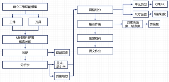 在网格划分模块,选择的单元类型为CPE4R,沙漏控制选择组合,其中刚度粘性因子权重设置为0.8。分析发现,当沙漏控制按照abaqus提供的官方例程选择松弛刚度时,材料会发生很严重的变形、断裂。而选择粘性时,切屑之间会粘连呈现絮状。这两种情况都不是理想的。通过多次实验分析,最终确定将权重因子设置为0.8比较合适。