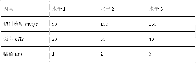 的切削深度可获得较好的加工表面质量。然后设计切削速度、x放振幅、超声频率的三因素、三水平正交实验。