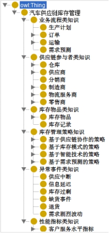 1. 基于前期通过Protégé构建的本体模型,进一步细化实体、关系属性和数据属性的定义,确保模型能够更全面地覆盖汽车供应链库存管理的各个方面。