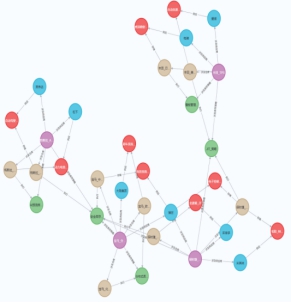(4)选择适合构建知识图谱的图数据库Neo4j,将经过语义标注和映射的知识数据转换为图数据库能够接受的格式,按照预定义的结构将数据导入 Neo4j 中,对构建好的知识图谱进行初步检查和验证,确保节点、边和属性的完整性和准确性,通过简单查询和可视化展示,查看图谱结构是否符合预期,图谱展示如下图所示。