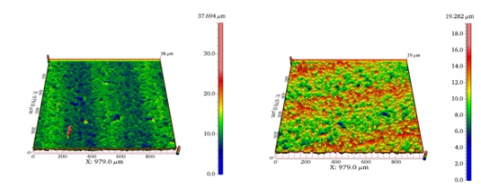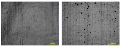 图 5 表面浅熔(左)与表面深熔(右)抛光效果