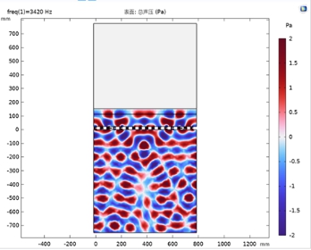 仿真场景为0.1MPa平面波从下向上入射,不考虑传热问题。加入阻抗匹配层后,声波可以无损的穿过阻抗传到到组织中。而没有加阻抗匹配层时,声波穿越硬物质后声压急剧下降,其幅值仅为水域中的1/3,能量大量耗散。