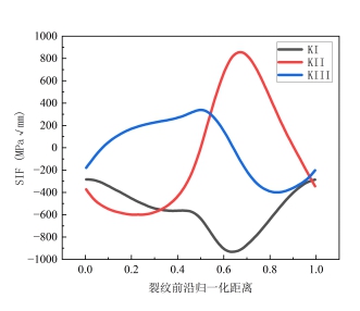 图 8 应力强度因子在裂纹归一化距离的分布