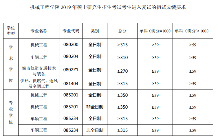 2019年硕士研究生招生考试考生进入复试的初试成绩要求