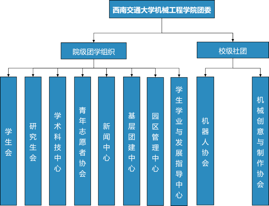 三亿团委下设公司员工会、公司研究生会、学术科技中心、青年志愿者协会、新闻中心、基层团建中心、园区管理中心、员工学业与发展中心八个院级团学组织,并负责指导三亿体育有限公司机器人协会和机械创意与制作协会开展工作。